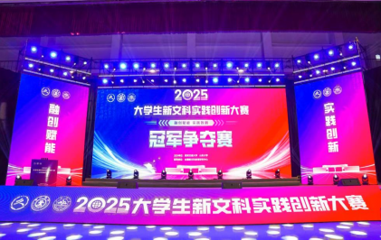 全国大学生新文科实践创新大赛是由教育部高等教育司发起、全国新文科教育研究中心主办的全国规模最大的文科类实践创新赛事。旨在强化文科专业教学内容与社会实际问题的紧密联系,引导文科专业学生用专业知识解决实际问题。2025年,全国共有31个省(自治区、直辖市)、433所高校的16万余名学生报名参赛,参赛总项目数超25000项。经过初赛和决赛网评赛,最终来自29个省(自治区、直辖市)、221所高校的454个项目晋级决赛现场赛,进行现场展示和答辩。入围决赛现场赛的比例为总参赛项目的1.8%,获得金奖的项目仅占总参赛项目的0.56%,足见赛事竞争激烈。大赛评审体系科学严谨,不仅关注项目的理论创新性与实践可行性,更着重考察其社会价值与落地成效,对参赛团队的综合能力素养提出极高要求,体现着我国新文科教育的方向和顶尖水平。