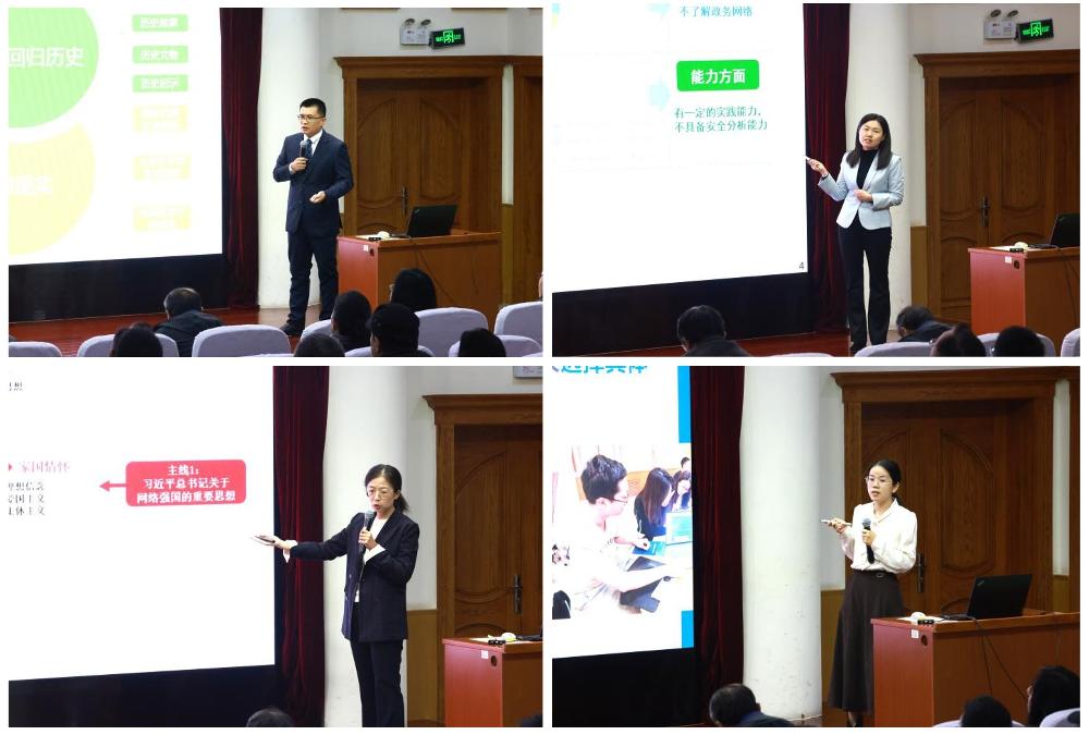 1024下午,学院举办教师教学创新大赛院赛院领导和教师代表120余人到场观摩。本次比赛分为“课程思政”、“新工科”、“新文科”、“基础课程”4个赛道,经各系部选拔推荐,共有8支教学团队参加不同赛道的院赛,院赛包括函评和现场汇报两个环节。在函评环节,5位校外专家对参赛团队的教学创新成果报告和教案进行打分。在现场汇报环节,参赛团队教师代表结合教学大纲与教学实践,进行不超10分钟的教学设计创新汇报,并接受校内外5位评委专家的打分。结合函评和现场汇报评分,郭超荣获一等奖,李艳、范洁荣获二等奖,赵越、刘宇栋荣获三等奖。